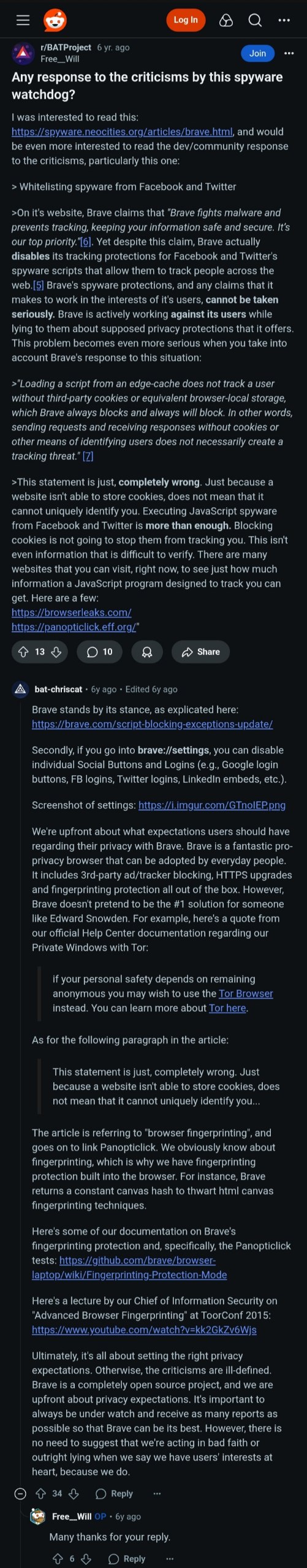 > Н-но я прочитал на сайте spyware watchdog, что брейв имеет высокий уровень телеметрии. Автор этих статей является труном, у которого уже не один год подгорает из-за Брендана Эйха, основателя Брейв. Подгорает по причине того, что Брендан является сторонником традиционных ценностей и не терпим к ЛГБТ. По этой причине, кстати, он и ушел с поста руководителя компании мазила, а позже основал Брейв. > Где пруфы того, что автор действительно трун и просто является слишком предвзятым? https://rentry.co/brave-trash А конкретно: It's no secret that Mozilla is a progressive company (a good thing), and as a result, half of Mozilla's board stepped down