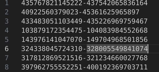 Следующая задачка, искать повторяющиеся подстроки цифр в диапазонах чисел