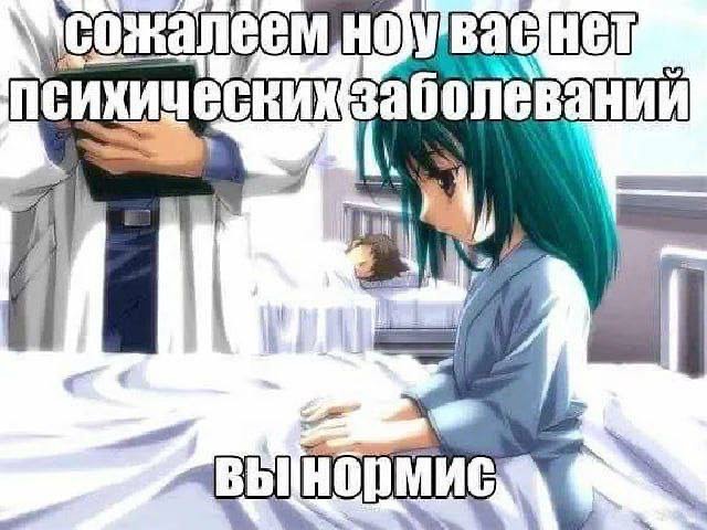 >>823809 У меня есть дед инсайд 2д вайфа (пикрил 2), она как я, тоже гуль, с депрессией в ноль лет. Зовут Тока Киришима, как думаешь будь она у психиатра какой бы ей диагноз поставили? ПРЛ? А может шизоидное? Может хроническая депрессия? Блин это очень круто. У меня кстати диагноз F20. Мне психиатр сказал, что у меня депрессия. А у тебя есть психический диагноз?