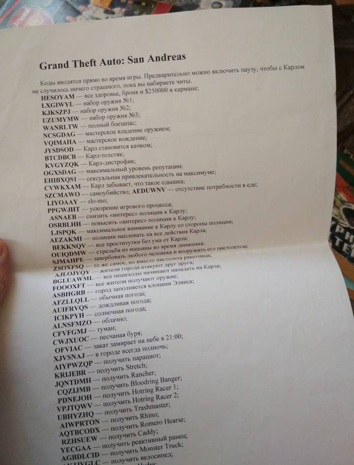 ⚡️В распоряжении редакции оказался документ, содержащий чит-коды для новой игры от студии Rockstar — GTA: San Andreas.