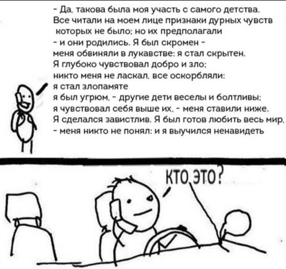 зумерок : да не слушайте вы этого сына шлюхи! он целый день сидит караулит свою бабушку или что там, я так и не понял, проходя мимо его рабочего места...